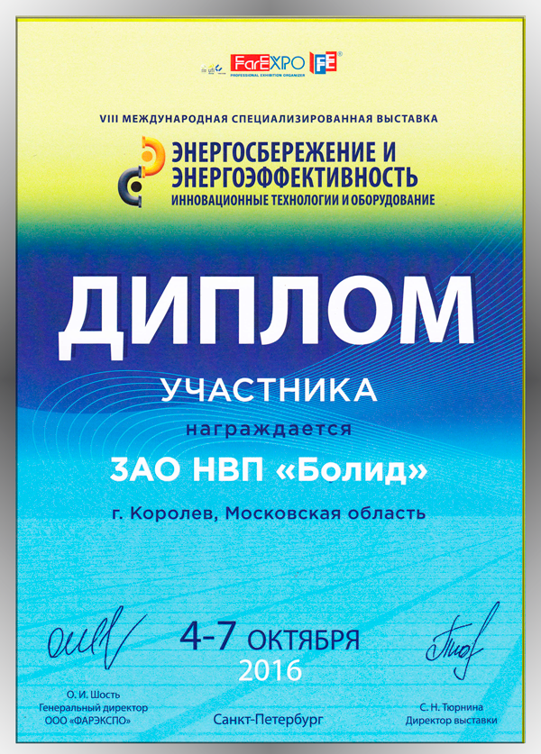 Награда: Диплом участника выставки "Энергосбережение и энергоэффективность. Инновационные технологии и оборудование"