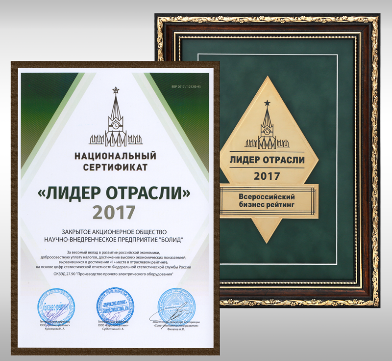 Награда: Национальный сертификат "Лидер отрасли 2017"