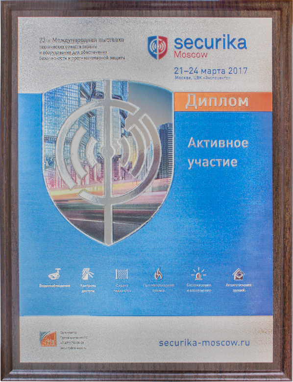 Награда: Диплом участника выставки Securika/MIPS-2017