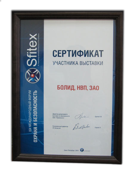 Награда: Сертификат участника выставки