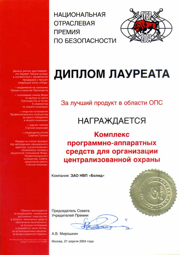 Национальная отраслевая премия по безопасности ЗУБР-2004