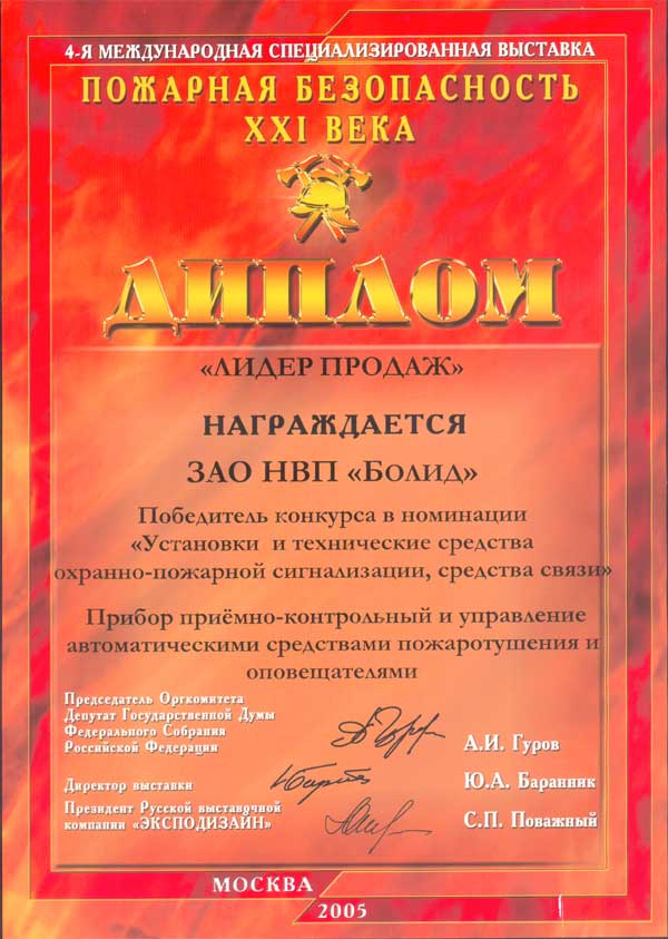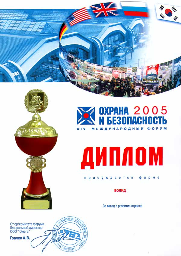 Награда: Диплом лауреата Конкурсной программы ?ЛУЧШИЕ ИННОВАЦИОННЫЕ РЕШЕНИЯ В ОБЛАСТИ ТЕХНОЛОГИЙ БЕЗОПАСНОСТИ 2000 ? 2005 г.г.?