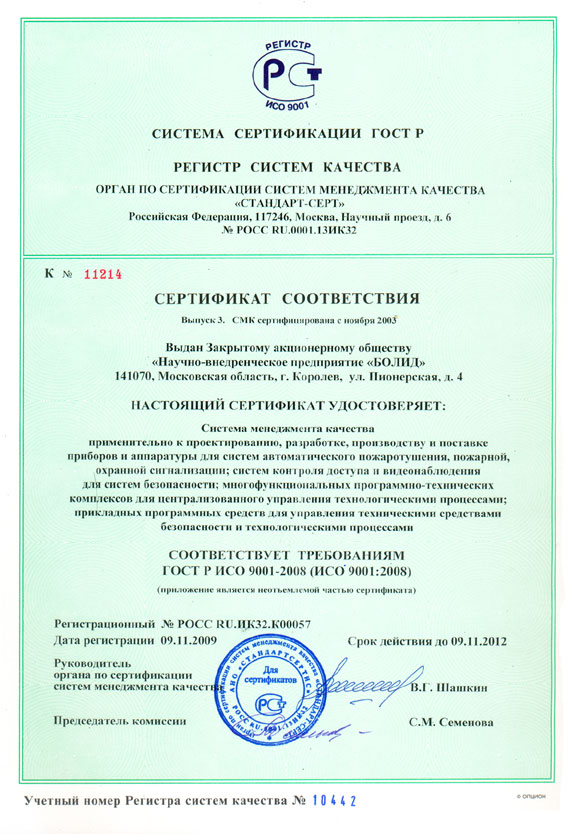 30 - 31 октября 2006 г. была проведена ресертификация системы менеджмента качества, действующей в ЗАО НВП "Болид".