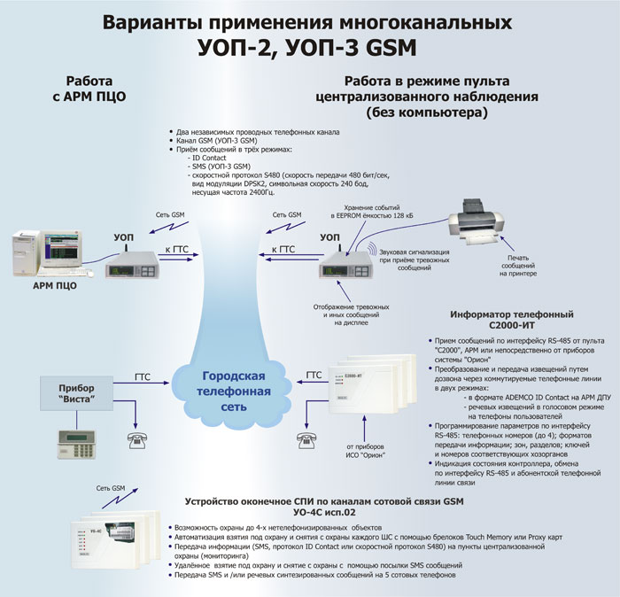 - Количество независимых каналов связи в УОП-2 - 2, УОП-3 GSM - 3