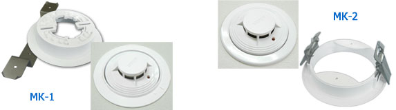 "МК-1" - устройство, выполненное в виде фланца, основание которого заменяет розетку извещателя. Фланец скрепляется с фрагментом потолка винтами в резьбовые отверстия металлической скобы.