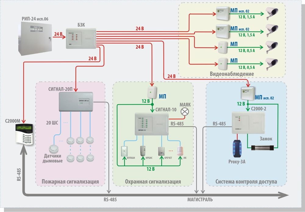 • БЗК осуществляет защиту каждой шины питания в отдельности, т.е. неисправности в одном из устройств не влияют на работоспособность остального оборудования