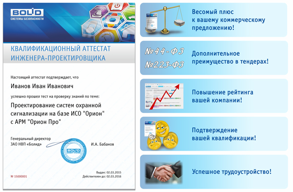Пройдя аттестацию, Вы сможете подтвердить свою квалификацию, продемонстрировав знания и опыт. Онлайн тестирование - эффективный метод проверки знаний специалистов в вопросах проектирования, инсталляции и эксплуатации оборудования и программного обеспечения производства компании Болид.
