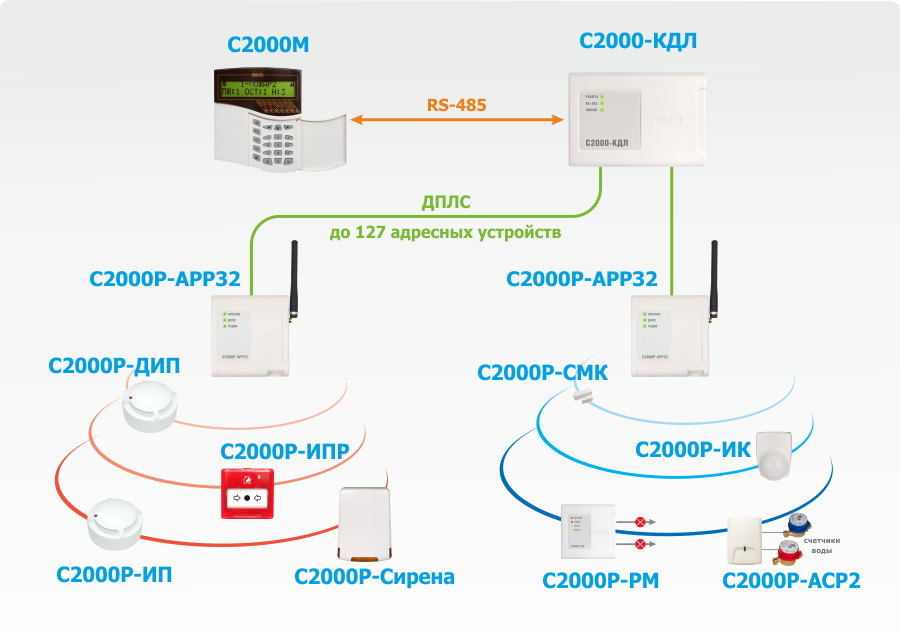 Для подключения радиоканальных устройств к "С2000-КДЛ" или "С2000 КДЛ-2И" применяется радиоканальный расширитель "С2000Р-АРР32".