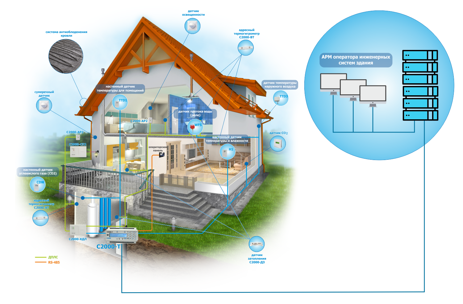 "OPC сервер С2000-Т" - пакет программного обеспечения предназначенного для интеграции автоматики инженерных систем, построенных на контроллере "С2000-Т" ("С2000-Т исп.01") в систему диспетчеризации и управления в виде SCADA системы. Позволяет управлять прибором "С2000-Т", получать состояния входов, выходов, включать и выключать дискретные выходы, считывать значения параметров и температур, задавать напряжения аналоговых выходов.