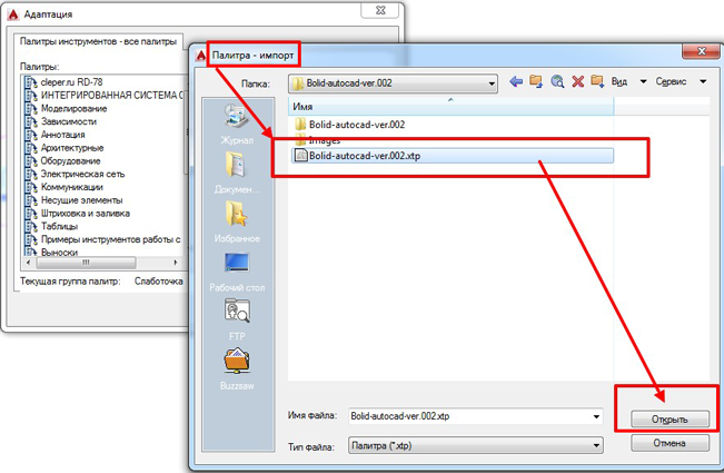 Выбираем в распакованной папке Bolid-autocad-ver.002 файл Bolid-autocad-ver.002.xtp