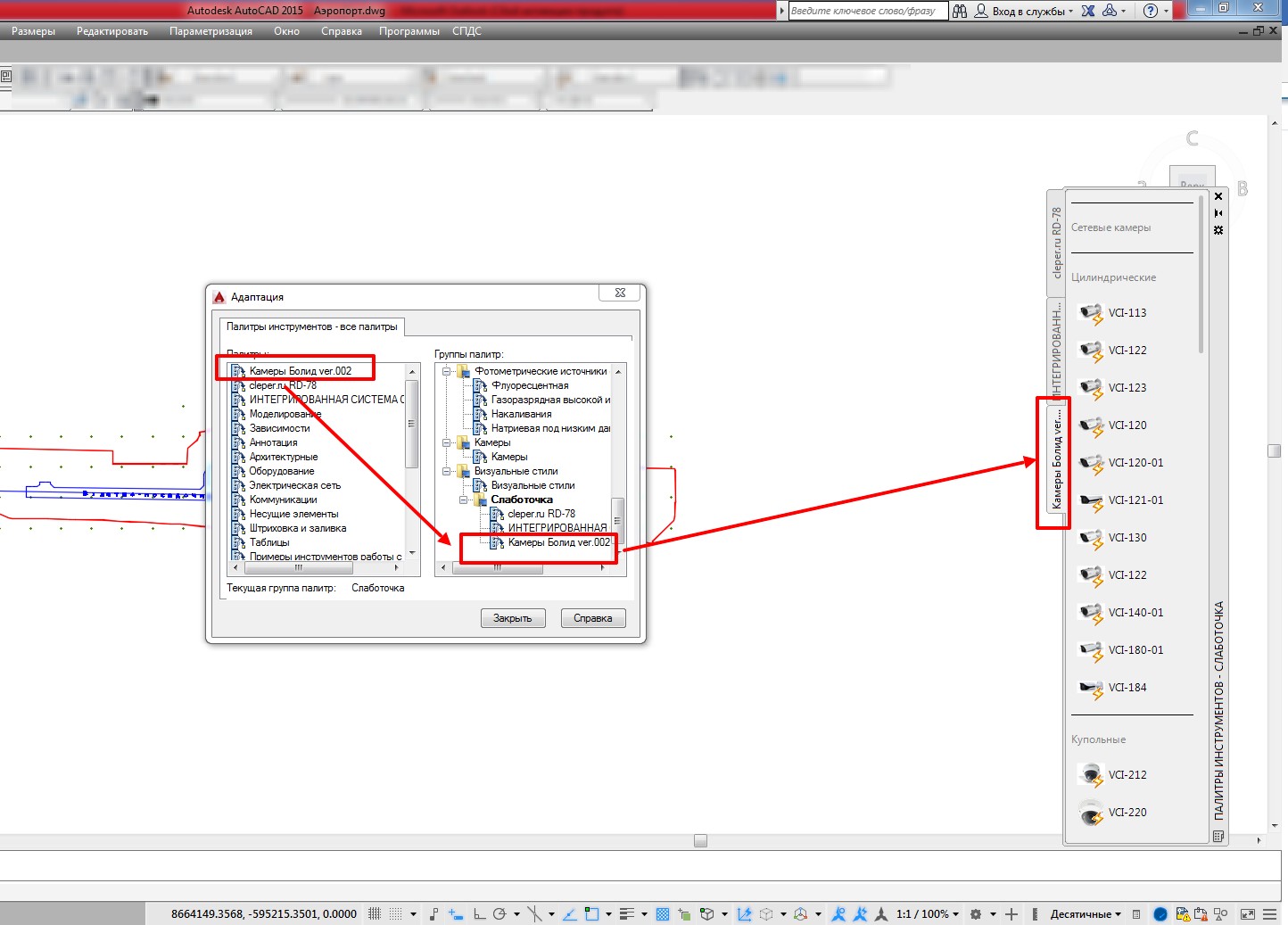 При необходимости добавляем палитру Камеры Болид ver.002 в вашу группу палитр: