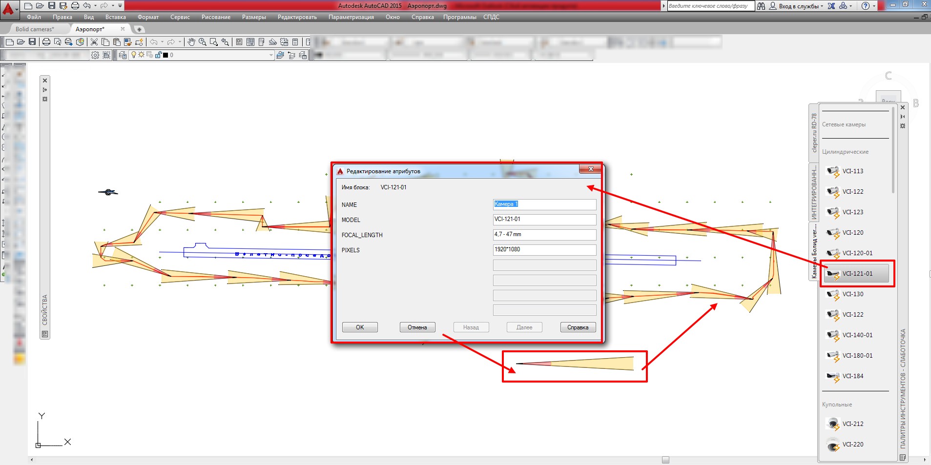 Инструментальная палитра AutoCAD для систем видеонаблюдения "Болид" позволяет существенно упростить процесс проектирования, сделав процесс принятия основных технических решений более прозрачным и обоснованным.