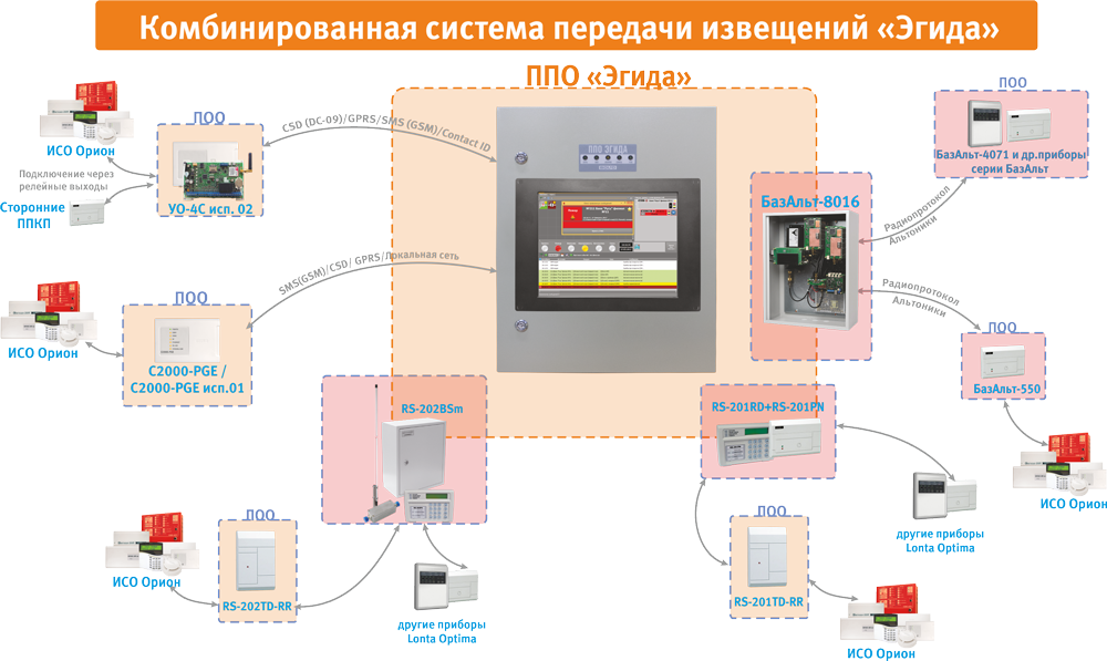 Комбинированная система передачи извещений "Эгида" является универсальной системой передачи извещений пожарной сигнализации, поддерживающей параллельный прием извещений и передачу команд управления по следующим каналам связи: