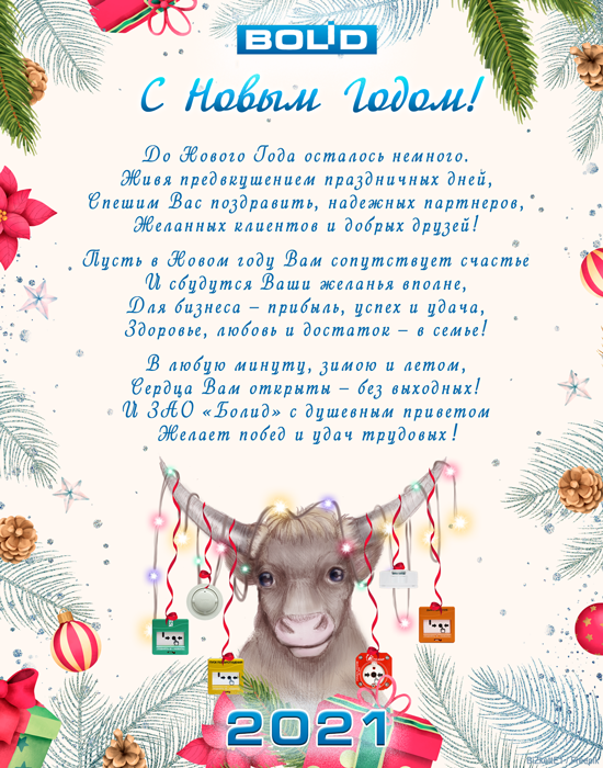 Компания "Болид" поздравляет с наступающим Новым 2021 годом!