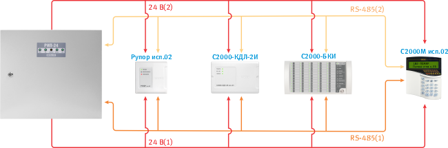 (рекомендованные резервированные источники питания – батареи серии «Болид» АБ 1240 (С или М) или АБ 1226 (С или М)