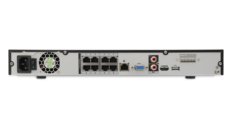Встроенный адаптер PoE для питания 8 видеокамер по кабелю сети Ethernet, 2 порта для HDD, 1 HDMI порт для подключения монитора, 1 Ethernet порт, крепление в стойку. Рекомендуется для средних и крупных объектов с высокими требованиями к длительности хранения видеоархива