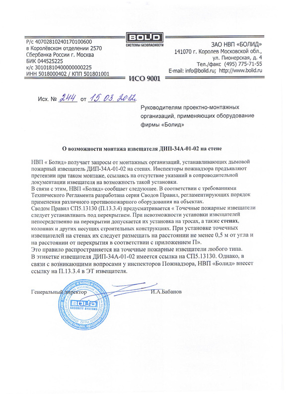 Выпускаемый аналог - Извещатель пожарный дымовой оптико-электронный адресно-аналоговый ДИП-34А-03.