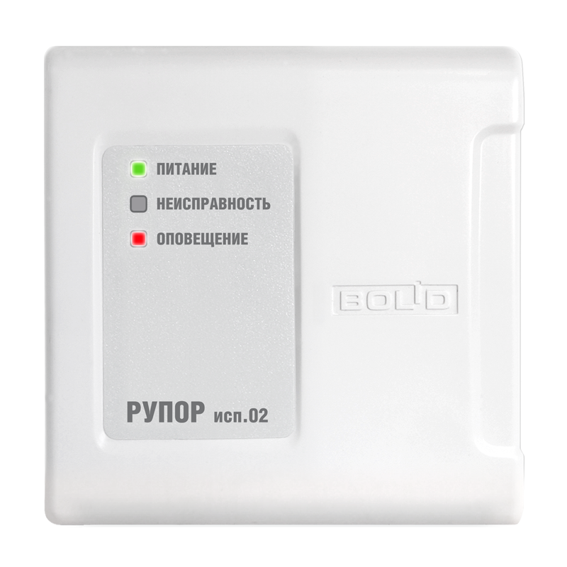 Блоки речевого оповещения Рупор исп.02 предназначен для трансляции предварительно записанной речевой информации о действиях, направленных на обеспечение безопасности при возникновении пожара и других чрезвычайных ситуаций. Блок речевого оповещения Рупор исп.02 предназначен для работы в составе ИСО «Орион».