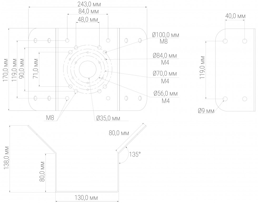 • Совместим с кронштейнами: BR-101, BR 107, BR-108, BR-110