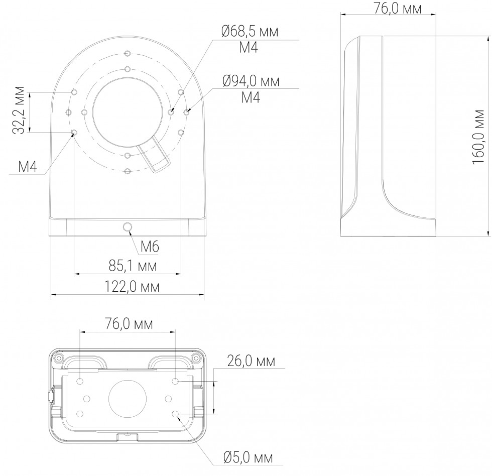 Кронштейн предназначен для настенного крепления купольных камер наружного видеонаблюдения.