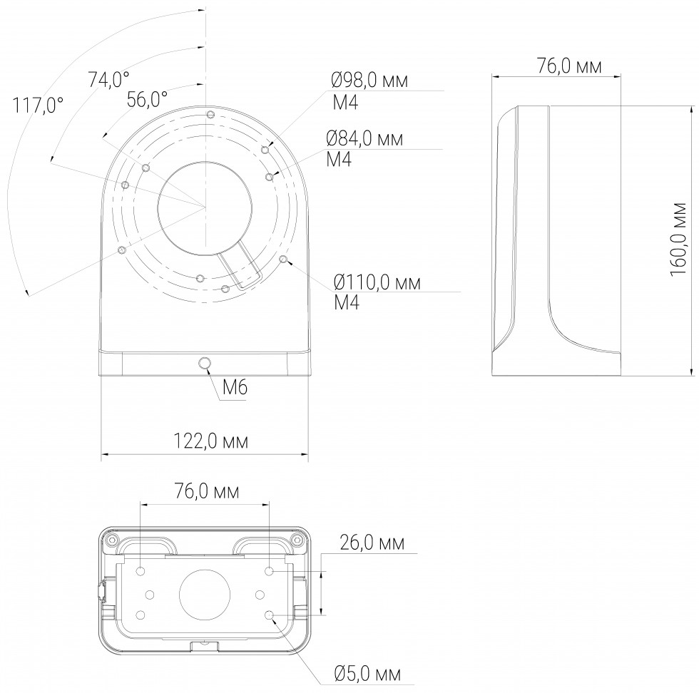 Кронштейн предназначен для настенного крепления купольных камер наружного видеонаблюдения.