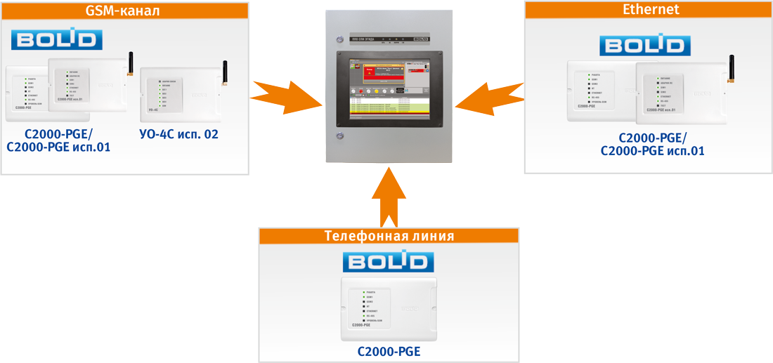Комбинированная система передачи извещений "Эгида" (КСПИ "Эгида") - это готовое решение для пожарного мониторинга объектов. Система разработана на базе промышленного ПК защищенного исполнения, включает все необходимые модули для приема извещений по локальной сети, проводным телефонным линиям и каналам GSM/GPRS от приборов "С2000-PGE", "С2000-PGE исп.01", "УО-4С исп.02" и ИСО "Орион", а также по радиоканалу с применением радиооборудования компании "Альтоника".
