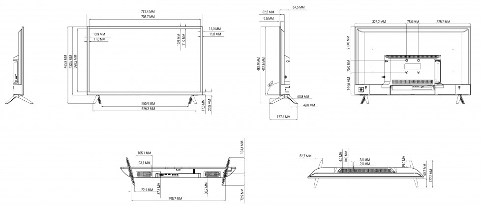 Габаритные размеры731,37×432,61×67,5 мм (без подставки)