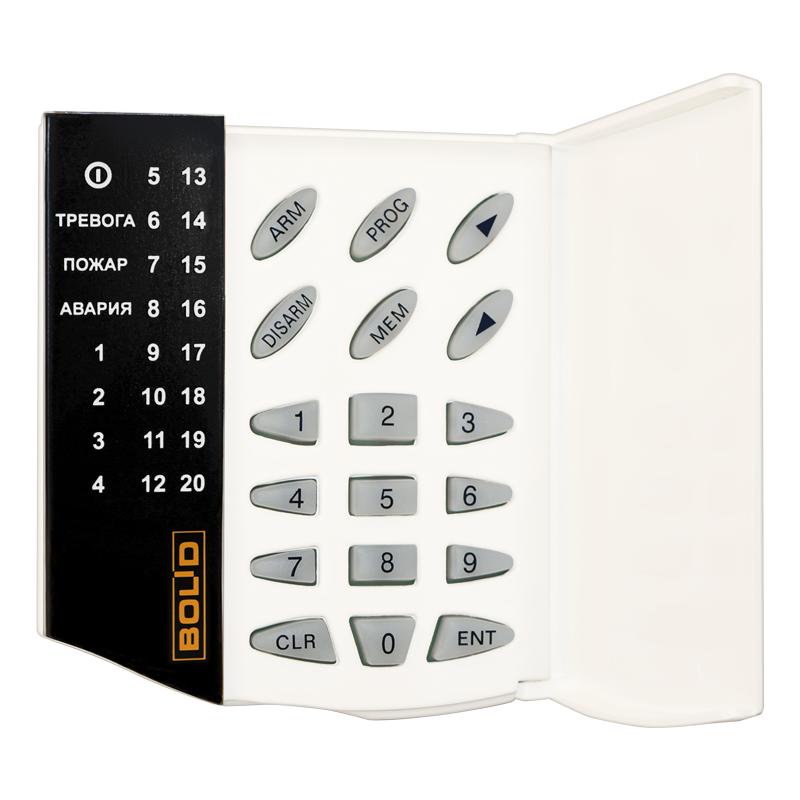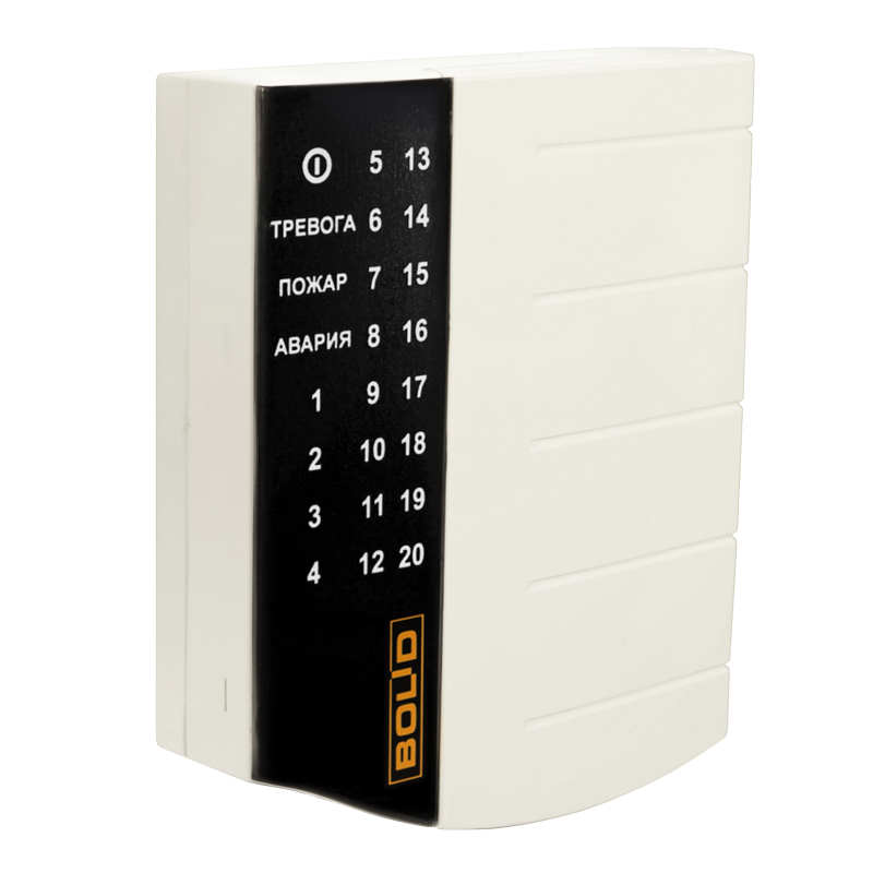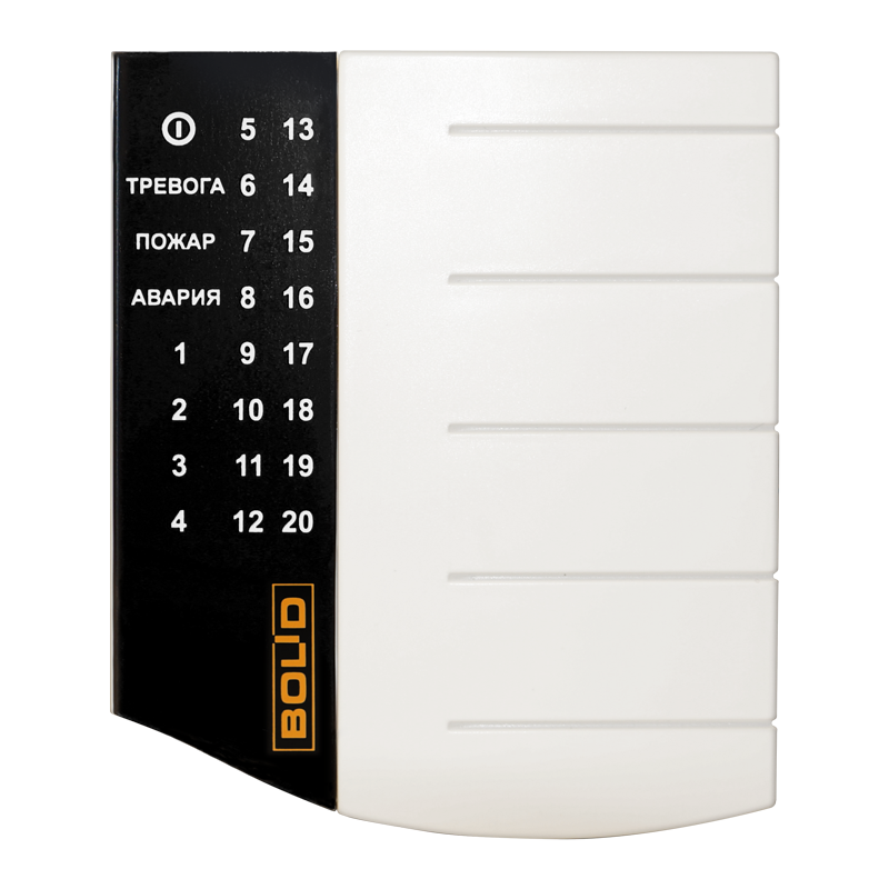 | Индикация | 20 двухцветных светодиодных индикаторов для отображения состояния разделов; 4 светодиодных индикатора для отображения режимов работы и тревожных событий | |