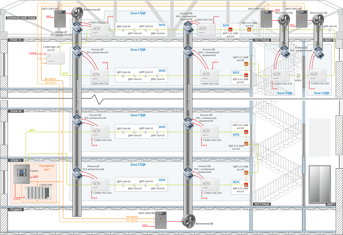 Структурная схема управления противопожарными клапанами: