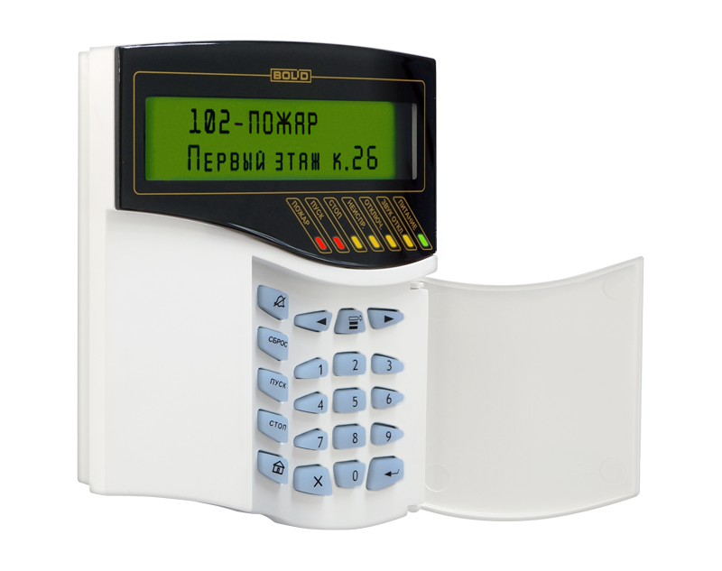• Индикация режимов "Тревога", "Пожар", "Пуск", "Останов", "Неисправность", "Отключен". Возможность просмотра состояний отдельных зон (разделов) и элементов системы на символьном индикаторе. Звуковая сигнализация тревог, пожаров, пусков и неисправностей на встроенном звуковом сигнализаторе. Индикация состояния зон охранной, пожарной сигнализации, средств противопожарной защиты и других исполнительных устройств на блоках "С2000-БИ", "С2000-БКИ", "С2000-ПТ", "Поток-БКИ"