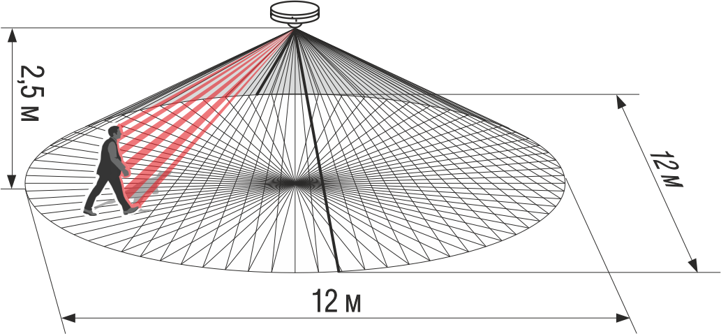 | Диаметр зоны обнаружения извещателя (при высоте 2.5м / 3.6м), м | 12 / 12 | |