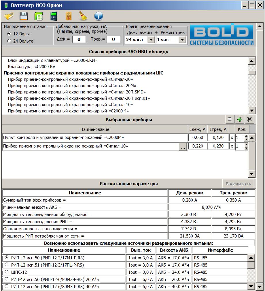 Программа позволяет оптимизировать подбор резервированных источников питания РИП-12/24 в системах безопасности.