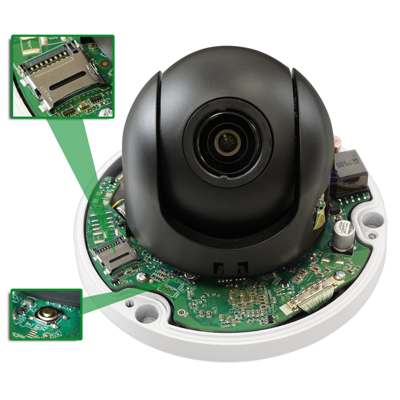• Встроенный адаптер PoE для питания видеокамеры по кабелю сети Ethernet