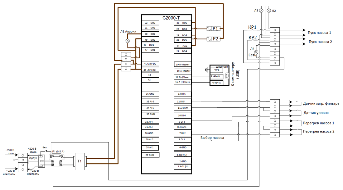 Трансформатор с напряжением сети 220В и выходной обмоткой 24В 1А – 1 шт. |