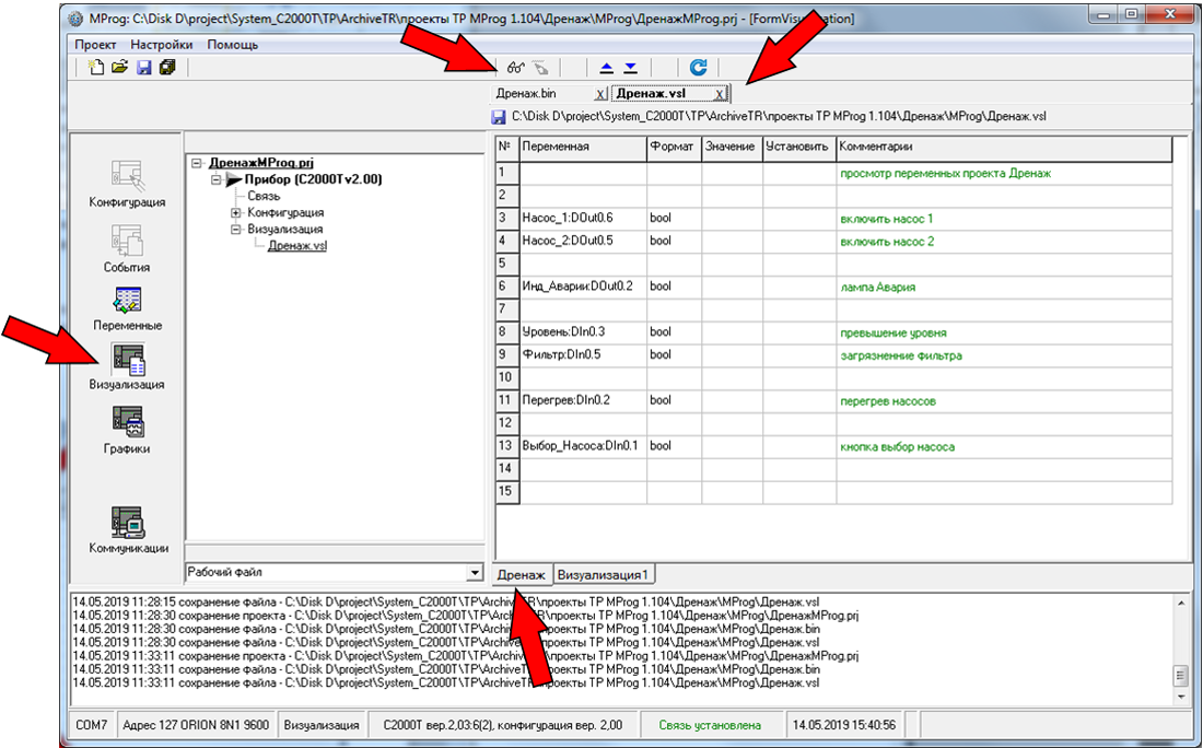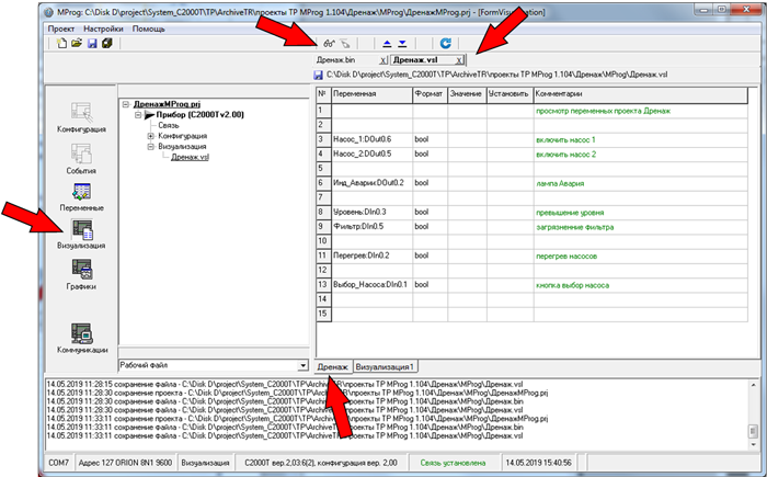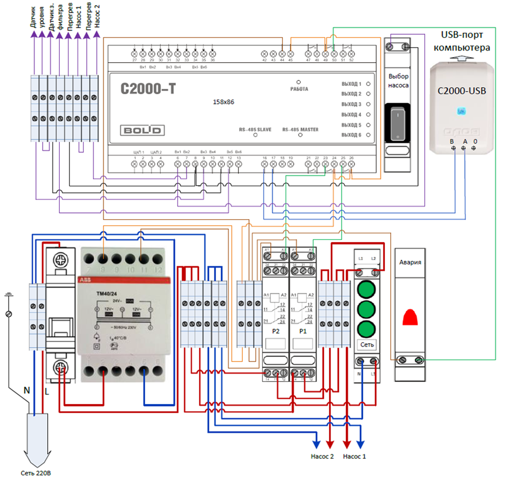Индикатор включения шкафа, Индикаторы включения насосов |