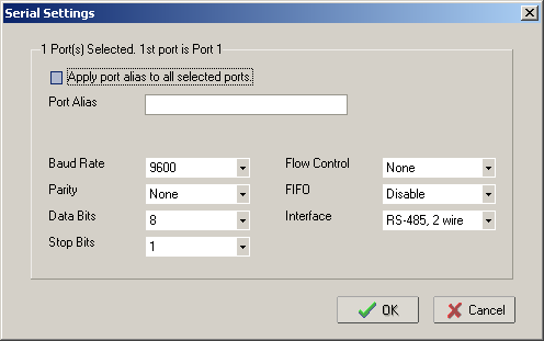 Настройки NPort 5150 аналогичны описанному ранее первому варианту подключения (пункт 1), за исключением настроек интерфейса: