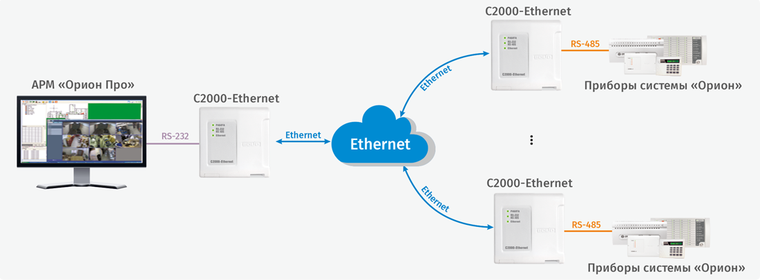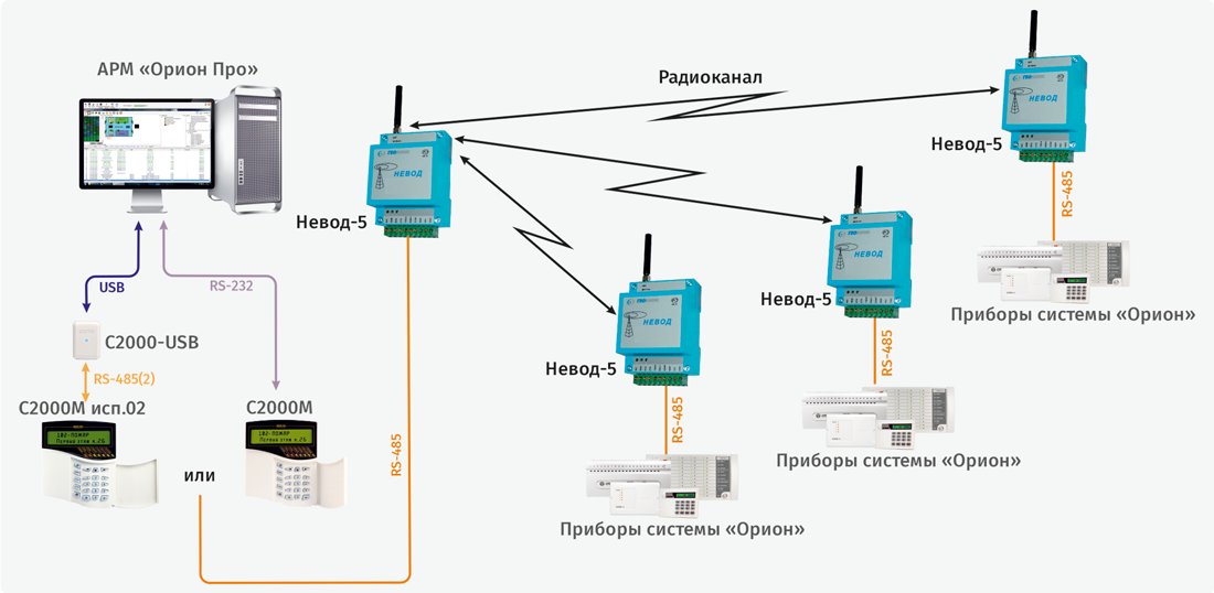 Варианты использования радиоканального повторителя интерфейса RS-485 "С2000-РПИ исп.02"