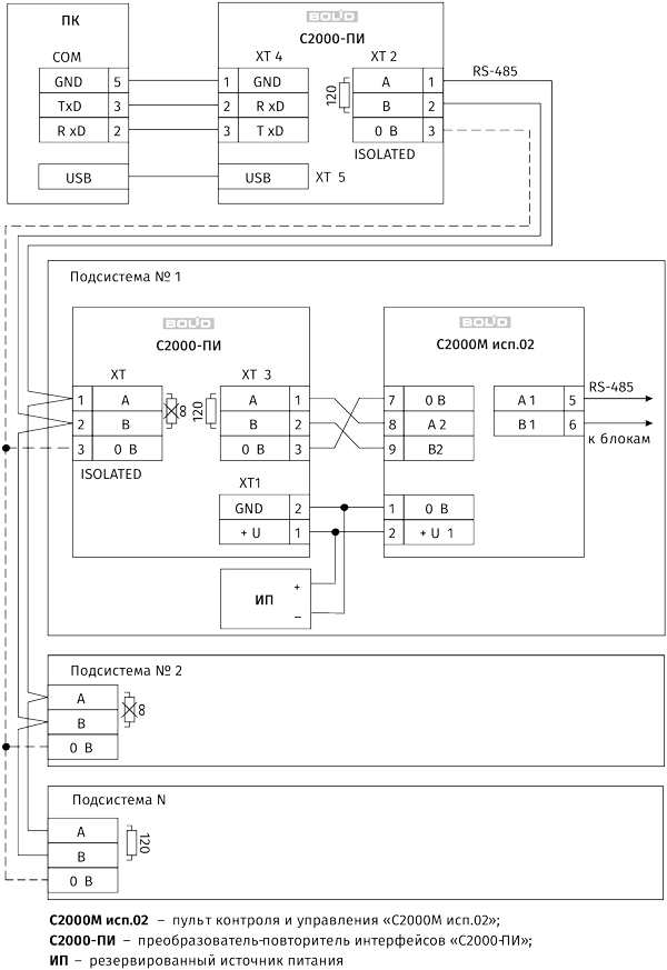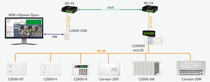 Организация канала интерфейса RS-485 для связи пульта «С2000М» исп.02 и АРМ «Орион Про»