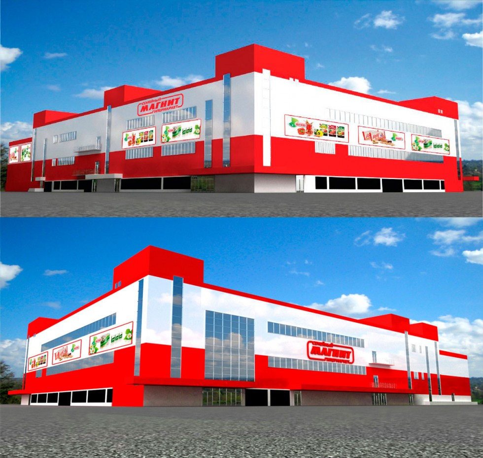 Проектом предусматривается размещение гипермаркета «МАГНИТ» в двухэтажном здании, размером в плане 90,8х64,0 м.