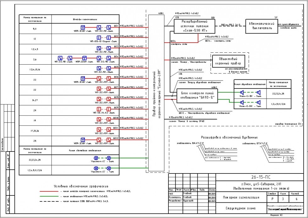 Система пожарная сигнализация в выделенных помещениях 1-го этажа смонтирована по проекту "26-15-ПС" на приборе приёмно-контрольный охранно-пожарный "Сигнал-20М".