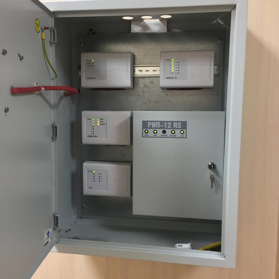 Система охранно-пожарной сигнализации в здании модуля пожарного поезда АО "ДЦВ Зап.Сиб. Ж.Д." Извещатели для охранной сигнализации применялись стороннего производителя. Для передачи сигнала на диспетчерский пульт используется телефонный информатор С2000-ИТ и телефонная линия связи.