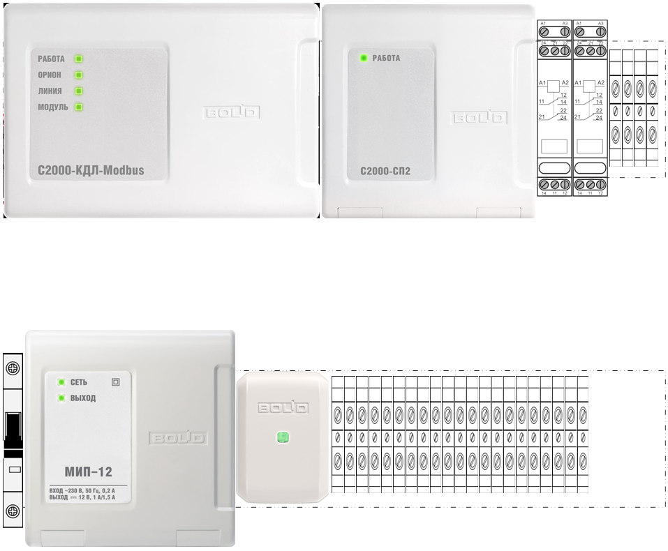 • контроллер двухпроводной линии С2000-КЛД-ModBus: