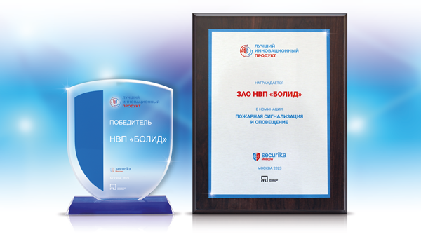 Рис. 4. Награда за победу в конкурсе «Лучший инновационный продукт» выставки Securika Moscow 2023