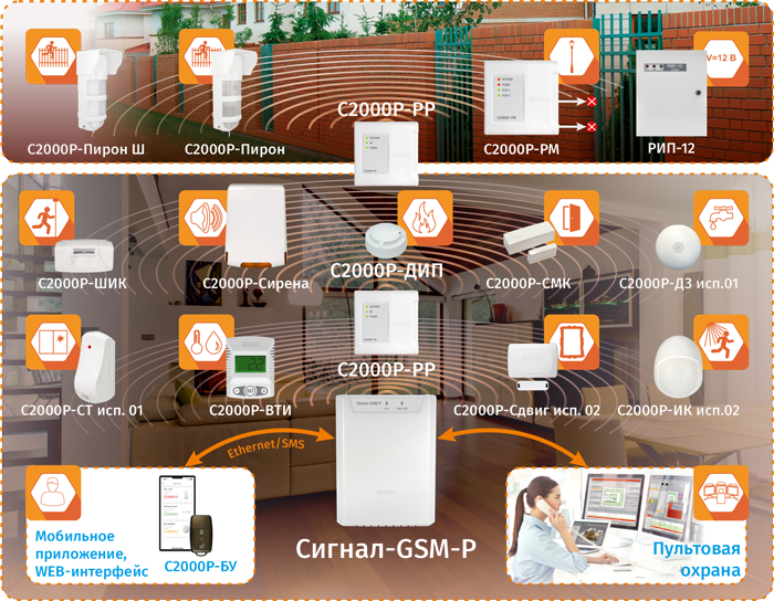 Использование системы «Радиоканальная система сигнализации на базе Сигнал-GSM-Р» предлагается в двух вариантах: