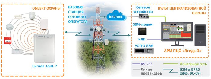 Охранным структурам рекомендуется использовать систему «Радиоканальная система сигнализации на базе Сигнал-GSM-Р» совместно с комплексом пультовой охраны «Эгида-3» (рис.2). При этом в полной мере будут использованы как возможности самой системы «Радиоканальная система сигнализации на базе Сигнал-GSM-Р», так и широкий функционал «Эгида-3» для организации охраны коттеджных поселков и сетевых городских объектов (аптек, магазинов, салонов связи и пр.). В «Эгида-3» прием сообщений и передача команд управления на Сигнал-GSM-Р осуществляется посредством СМС или в протоколе DC-09  по каналам Интернет и GSM GPRS. При необходимости можно использовать имеющуюся у охранной структуры другую пультовую систему передачи извещений, работающую по протоколу DC-09.