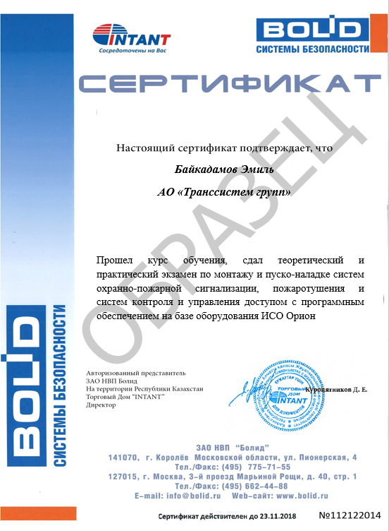 ПоддержкаОбучениеСеминары и курсы авторизованных учебных центровТОО Торговый Дом IntantКурс: Интегрированные системы безопасности (на примере ИСО ОРИОН)